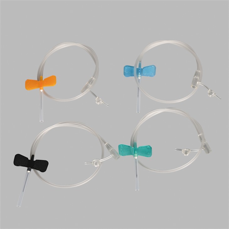 Jarum kulit kepala terdiri daripada dua sayap, jarum suntikan subkutaneus, tiub lutsinar lembut (biasanya 20-35 sentimeter panjang), dan penyambung hujung (Luer slip atau kunci Luer) yang bersambung dengan peranti urat kepala.Ia disambungkan kepada set infusi untuk digunakan bersama-sama dan memadankan pelbagai jenis set infusi dengan penyambung Luer yang berbeza.Ia amat sesuai untuk orang yang tidak dapat membetulkan tangan dan kaki mereka, serta bayi, obes dan populasi lain.Ia mempunyai lima warna dan sepadan dengan berat yang berbeza.
